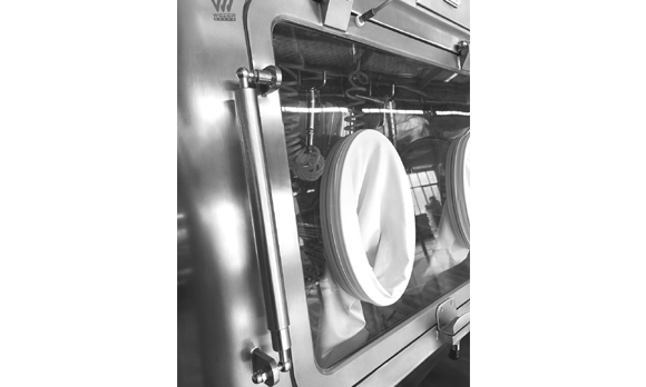 密閉腔體采用不銹鋼材料,內(nèi)部沒有死角,便于清洗。手套材質(zhì)要根據(jù)物料特性選用,避免對(duì)物料的污染或者被物料腐蝕。手套箱的形狀和尺寸一般為定制,以滿足客戶的特殊需要。