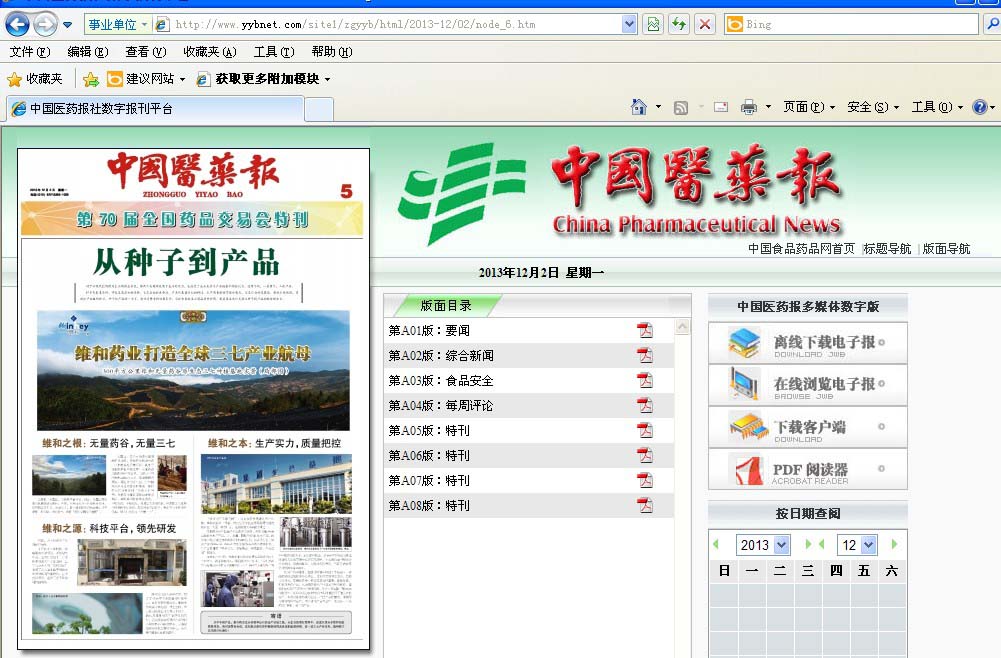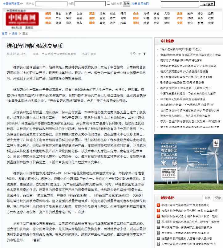 本報(bào)訊(記者唐文霖)在全市生物醫(yī)藥行業(yè)整體下滑的背景下,去年維和藥業(yè)實(shí)現(xiàn)了產(chǎn)銷穩(wěn)步增長(zhǎng)。圍繞建好基地、種好藥材,打造平臺(tái)、加快研發(fā),技改擴(kuò)能、提升規(guī)模,打造品牌、強(qiáng)化營(yíng)銷,步入轉(zhuǎn)型升級(jí)期的維和正傾力打造三七全產(chǎn)業(yè)鏈融入新常態(tài)?!八幉暮?,藥才好”,這是維和人常掛在嘴邊的一句話。為從源頭上保證藥材質(zhì)量,維和于2010年在大理南澗縣無(wú)量山建立萬(wàn)畝三七規(guī)模化、規(guī)范化原生態(tài)種植...