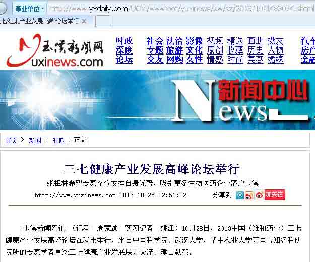 玉溪新聞網(wǎng)訊(記者周家穎實(shí)習(xí)記者姚江)10月28日,2013中國(guó)(維和藥業(yè))三七健康產(chǎn)業(yè)發(fā)展高峰論壇在我市舉行,來(lái)自中國(guó)科學(xué)院、武漢大學(xué)、華中農(nóng)業(yè)大學(xué)等國(guó)內(nèi)知名科研院所的專家學(xué)者圍繞三七健康產(chǎn)業(yè)發(fā)展展開(kāi)交流、建言獻(xiàn)策。中國(guó)科學(xué)院院士鄧子新、武漢大學(xué)藥學(xué)院中藥與天然藥物研究所所長(zhǎng)王有為、華中農(nóng)業(yè)大學(xué)教授趙斌、中僑聯(lián)青委副理事長(zhǎng)李云祥、中組部“千人計(jì)劃”特聘教授陳庚輝等出...