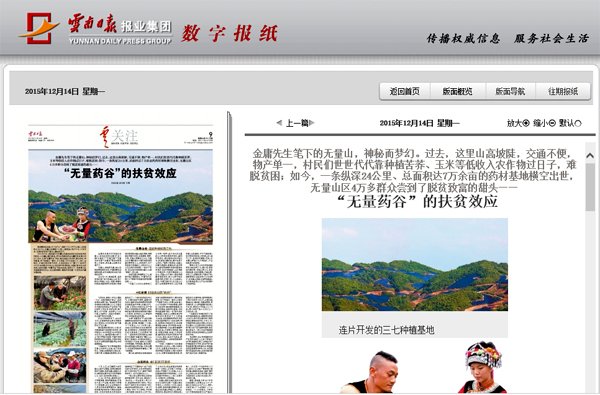金庸先生筆下的無(wú)量山,神秘而夢(mèng)幻。過(guò)去,這里山高坡陡,交通不便,物產(chǎn)單一,村民們世世代代靠種植苦蕎、玉米等低收入農(nóng)作物過(guò)日子,難脫貧困;如今,一條縱深24公里、總面積達(dá)7萬(wàn)余畝的藥材基地橫空出世,無(wú)量山區(qū)4萬(wàn)多群眾嘗到了脫貧致富的甜頭——“無(wú)量藥谷”的扶貧效應(yīng)。