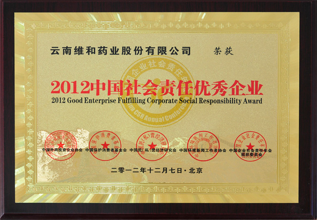 榮獲2012年中國(guó)社會(huì)責(zé)任優(yōu)秀企業(yè)