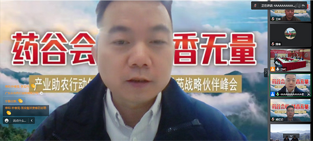 (無量藥谷董事長王海濤介紹產(chǎn)業(yè)助農(nóng)的生態(tài)產(chǎn)品)